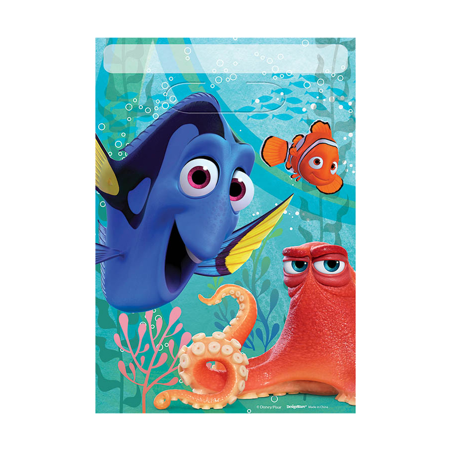 Finding Dory Favor Bags product details: •8 per package •6 1/2in wide x 9 1/2in tall •Plastic
