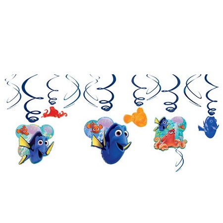 Finding Dory Swirl Decorations include: •6 foil swirl decorations •3 foil swirl decorations with 7in cutouts •3 foil swirl decorations with 5in cutouts •Attached plastic hooks